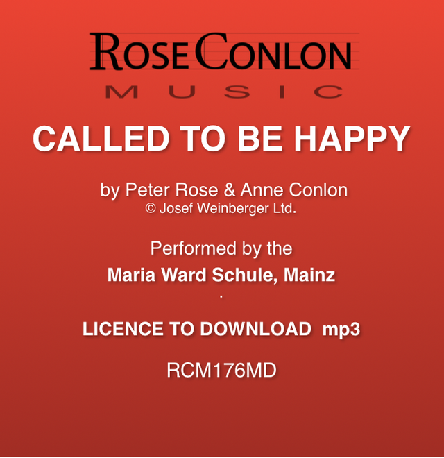 RCM176MD Licence to download the mp3 audio files of the album CALLED TO BE HAPPY (by Peter Rose and Anne Conlon © Josef Weinberger Ltd. London). These files will be sent via WeTransfer.com to your email address after payment has been processed. This is the recording of the World Première performance (March 2022) given by the remarkable singers and musicians of Maria Ward Schule, Mainz, directed by Matthias Warzecha.