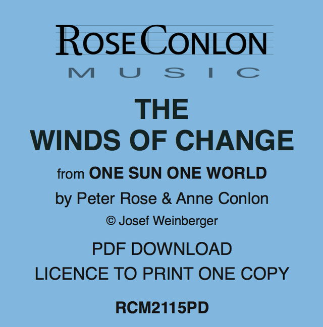 RCM2115PD: Licence to download a single PDF copy of the piano vocal score of The Winds of Change by Peter Rose and Anne Conlon © Josef Weinberger Ltd.